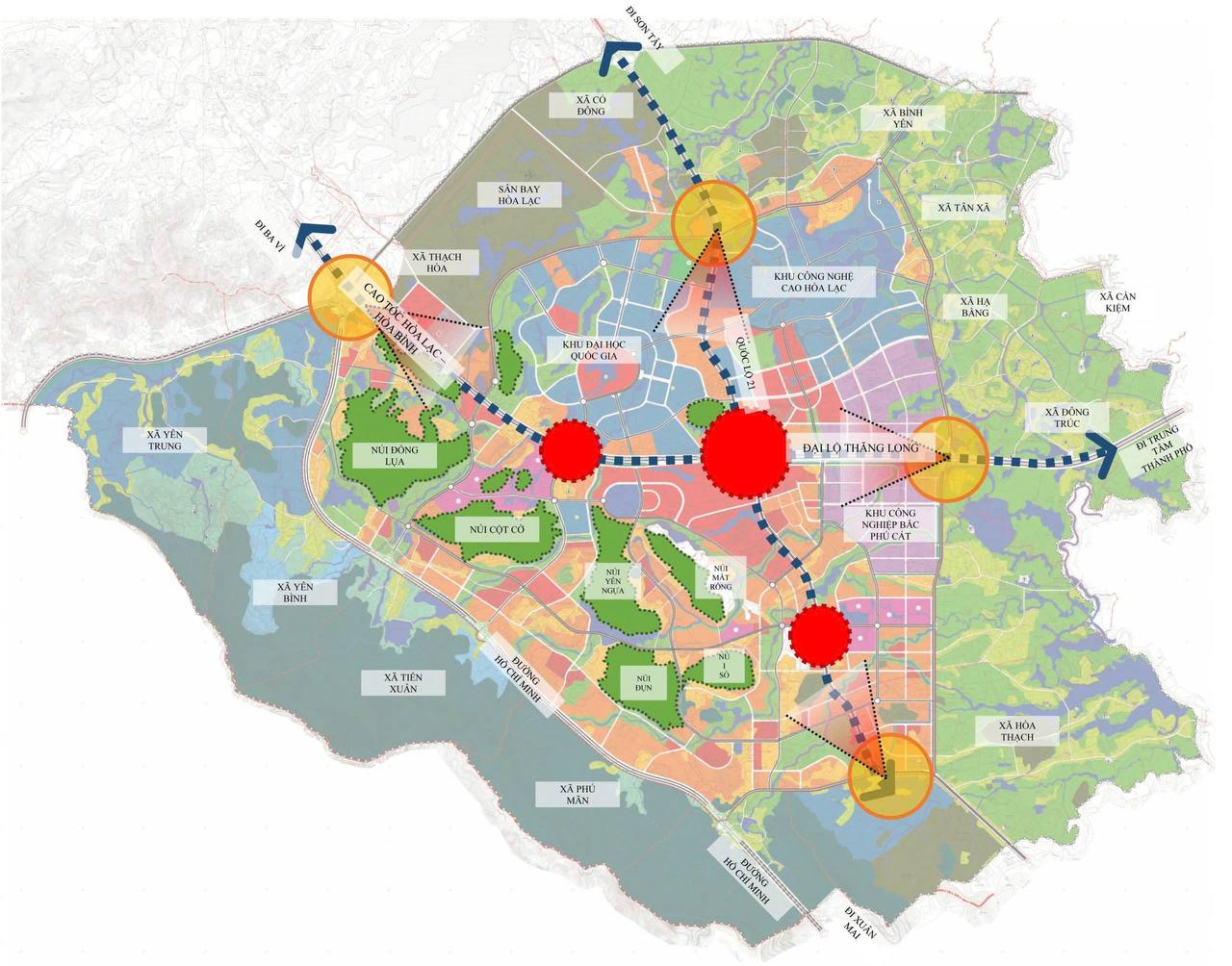 Từ đầu năm 2025, Hòa Lạc liên tiếp đón nhận nhiều thông tin tích cực về hạ tầng và quy hoạch. Đáng chú ý, vào đầu tháng 3/2025, UBND TP. Hà Nội đã ban hành kế hoạch triển khai Đề án phát triển Khu Công nghệ cao Hòa Lạc đến năm 2030, tầm nhìn 2045. Đây là bước đi quan trọng nhằm hiện thực hóa mục tiêu tăng trưởng từ 8% trở lên trong năm 2025, thông qua việc đẩy nhanh các dự án hạ tầng quy mô lớn, trong đó có tuyến đường sắt đô thị số 5 (Văn Cao – Ngọc Khánh – Láng – Hòa Lạc) với chiều dài gần 39km đi qua khu vực này.